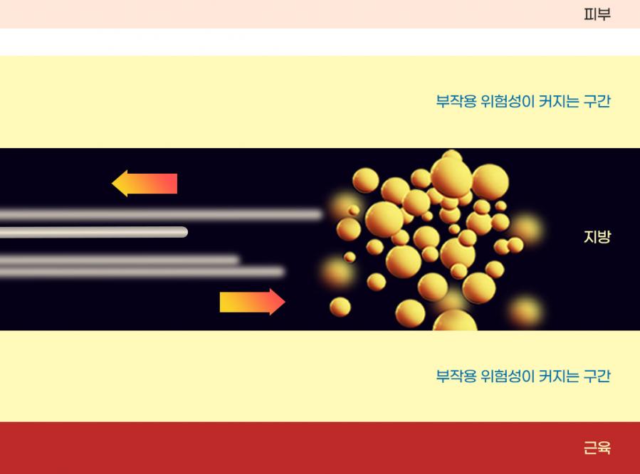 일반적인 진동식(기계식) 테크닉으로 지방을 제거할 경우 신경 자극 가능성이 높습니다.