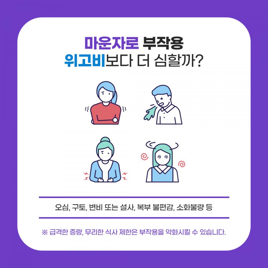 급격한 증량, 무리한 식사 제한은 부작용을 악화시킬 수 있습니다.