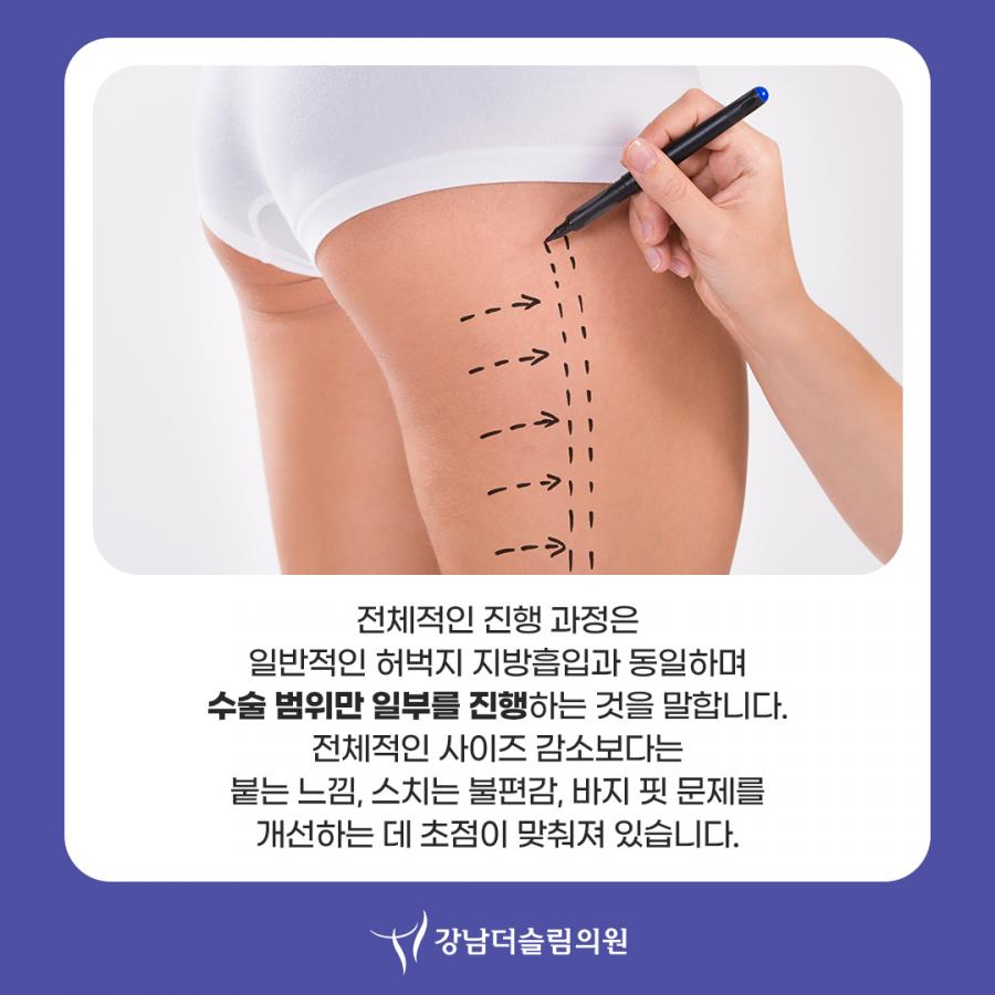→ 특정 부위만 정리하는 라인 보정 목적 (허벅지 바깥쪽 or 핫팬츠라인(허벅지 상부 1/2) 등)