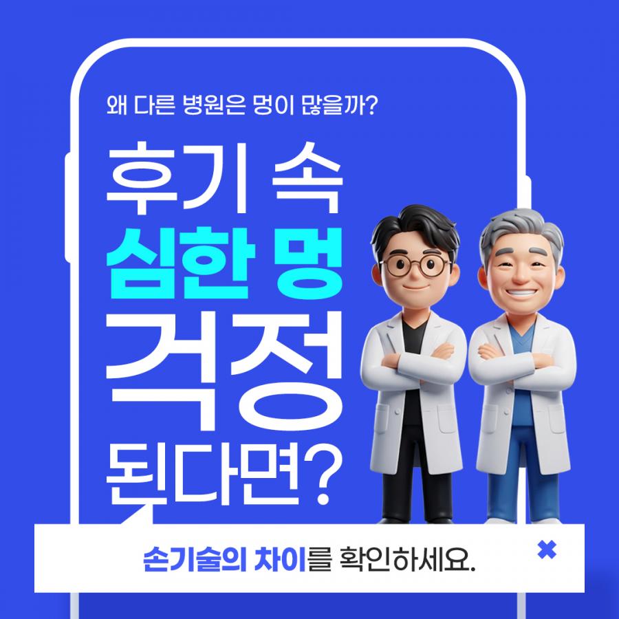 수술 방식에 따라 멍 발생 여부가 크게 달라질 수 있습니다.