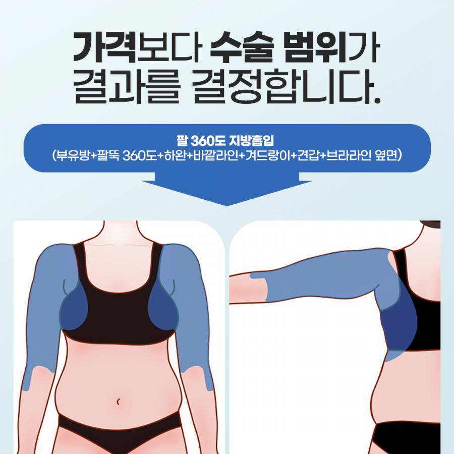 - 팔뚝 360도와 부유방, 겨드랑이, 브라라인 옆면, 하완 바깥라인 모두하는지에 따라