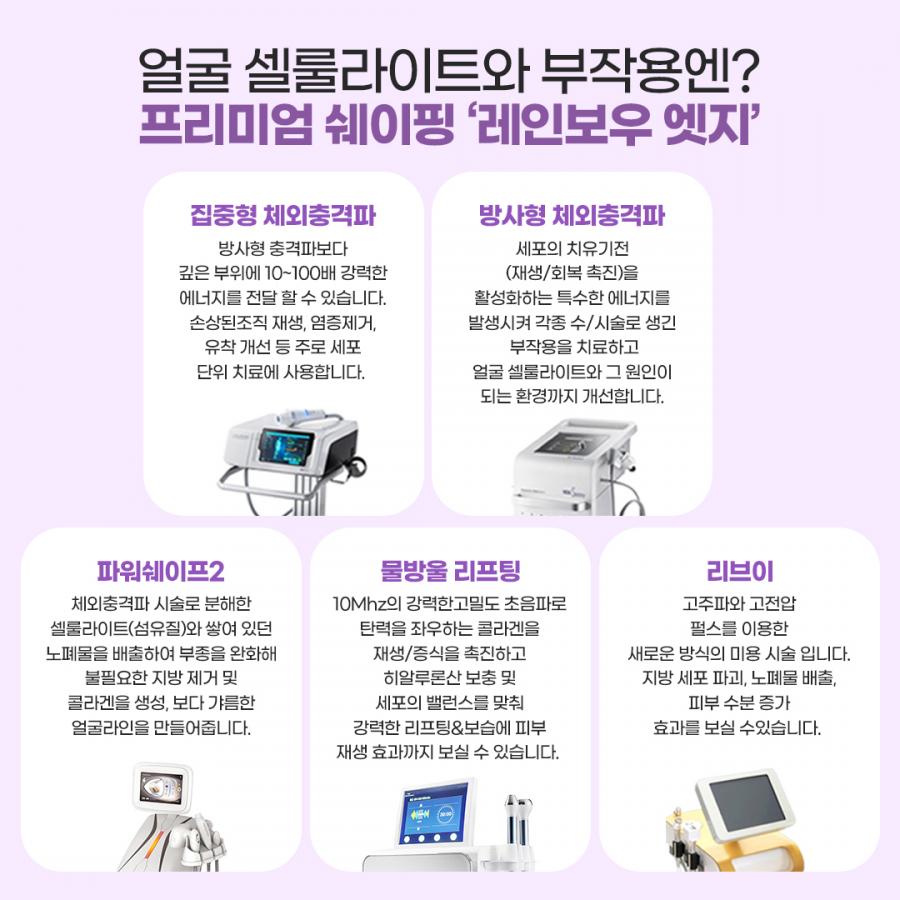 → 레인보우 포커스 엣지 (집중형 충격파 + 파워쉐이프2 or 물방울 초음파)