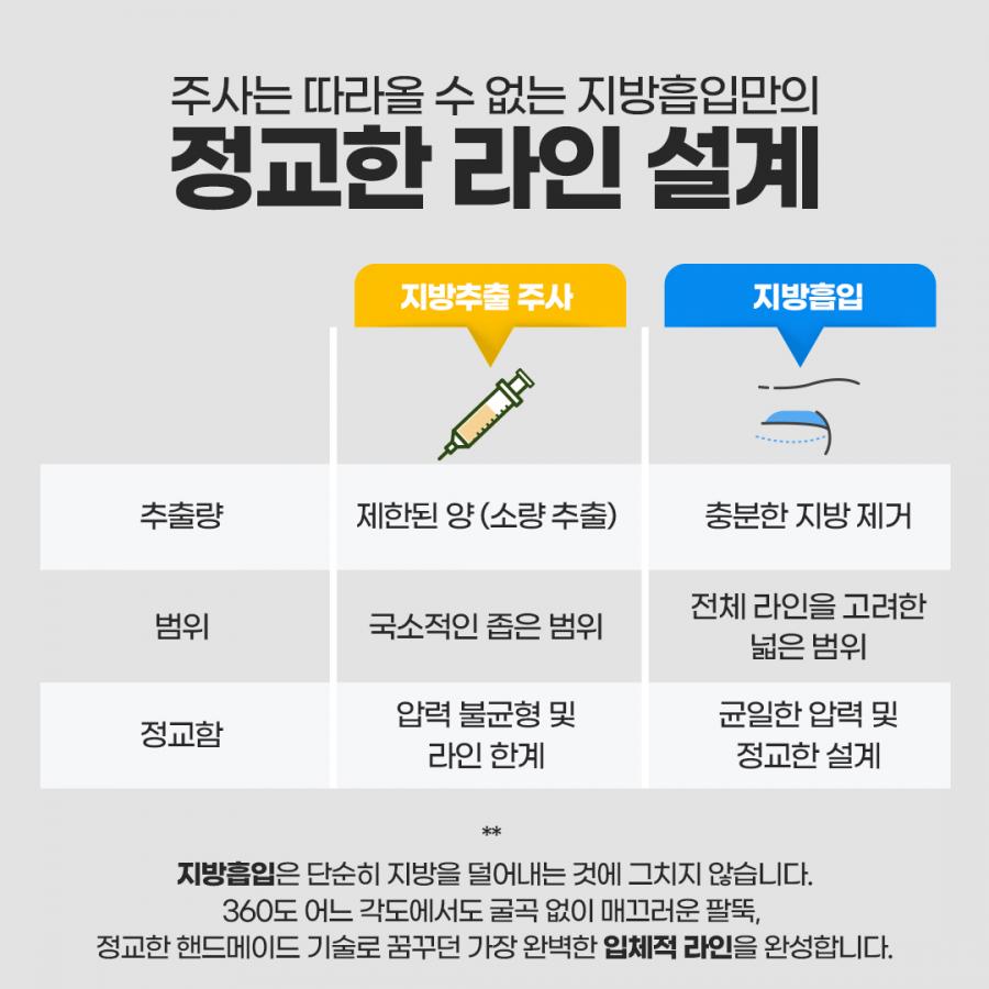 지방흡입 : 충분한 제거, 넓은 범위, 정교한 라인 설계