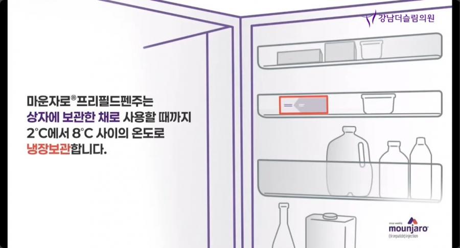 - 마운자로 프리필드 펜주는 상자에 보관한 채로 사용할 때까지 2°C에서 8°C 사이의 온도로 냉장 보관합니다.