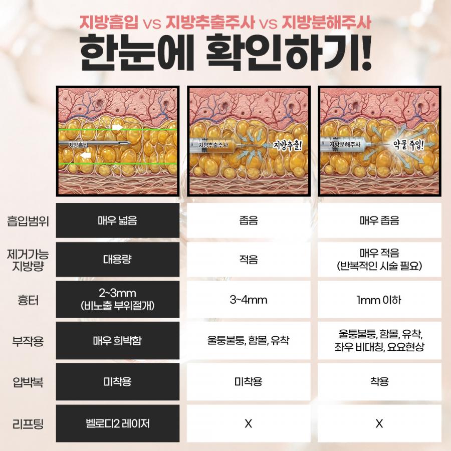 지방분해주사와 달리 일부 지방을 물리적으로 제거하는 시술입니다.