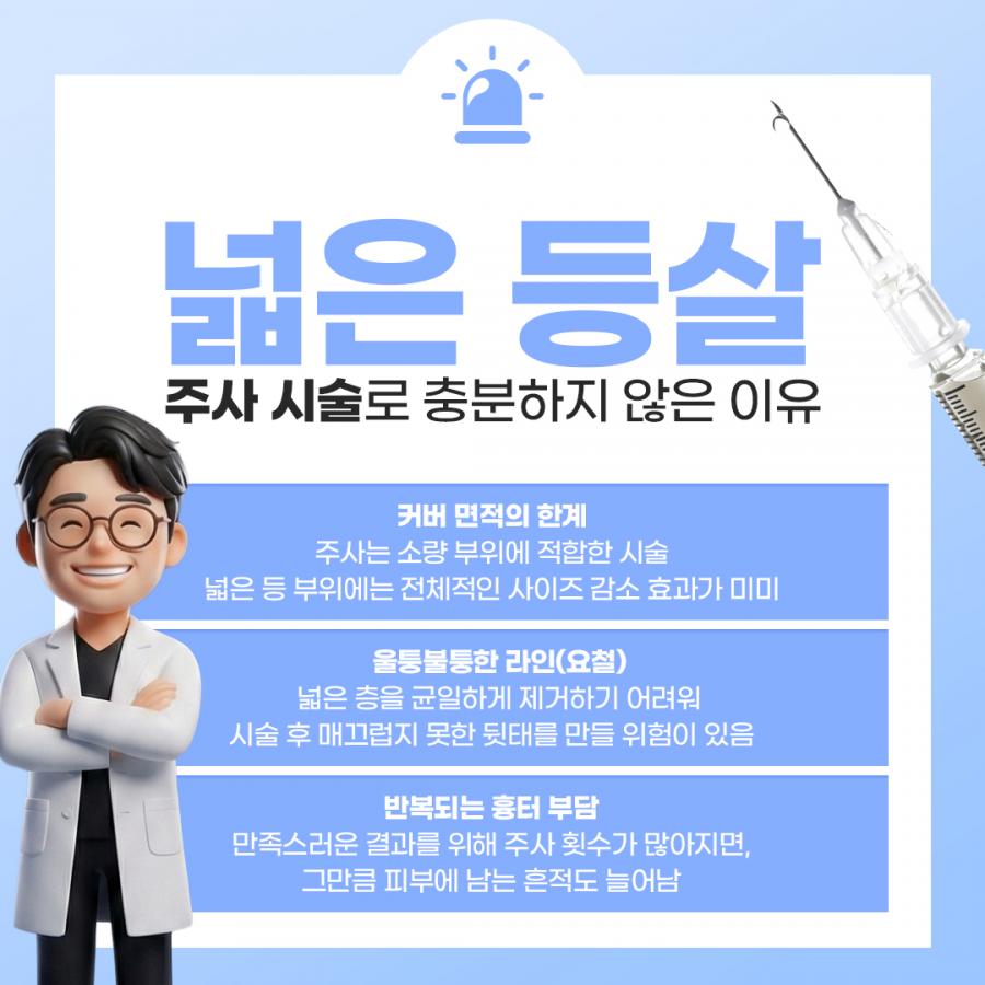 따라서 면적이 넓은 등 부위에는 효과가 제한적인 경우가 많습니다.